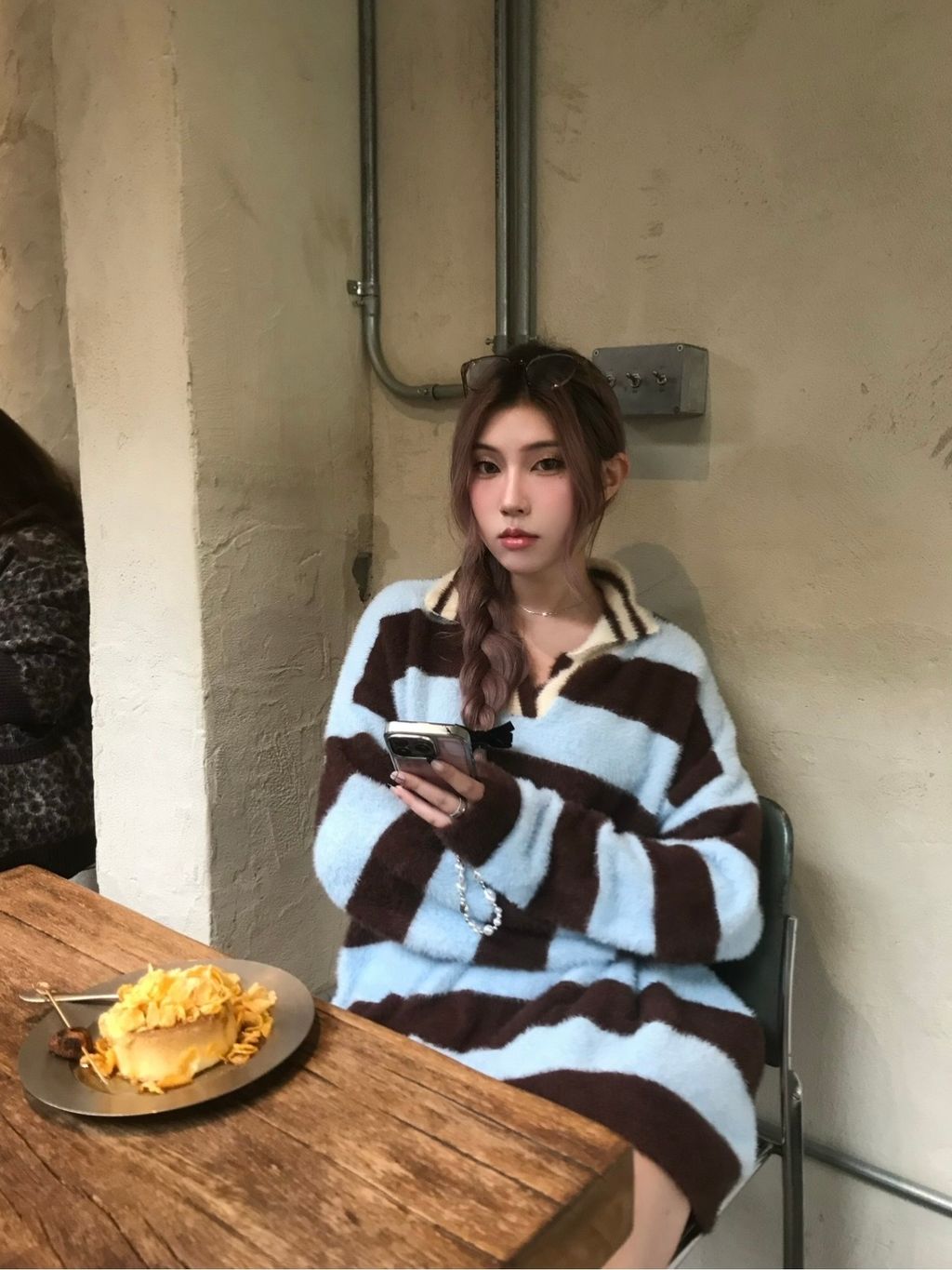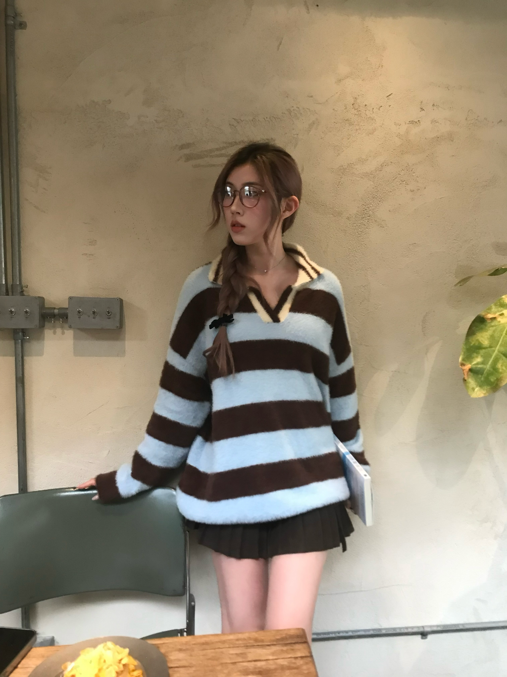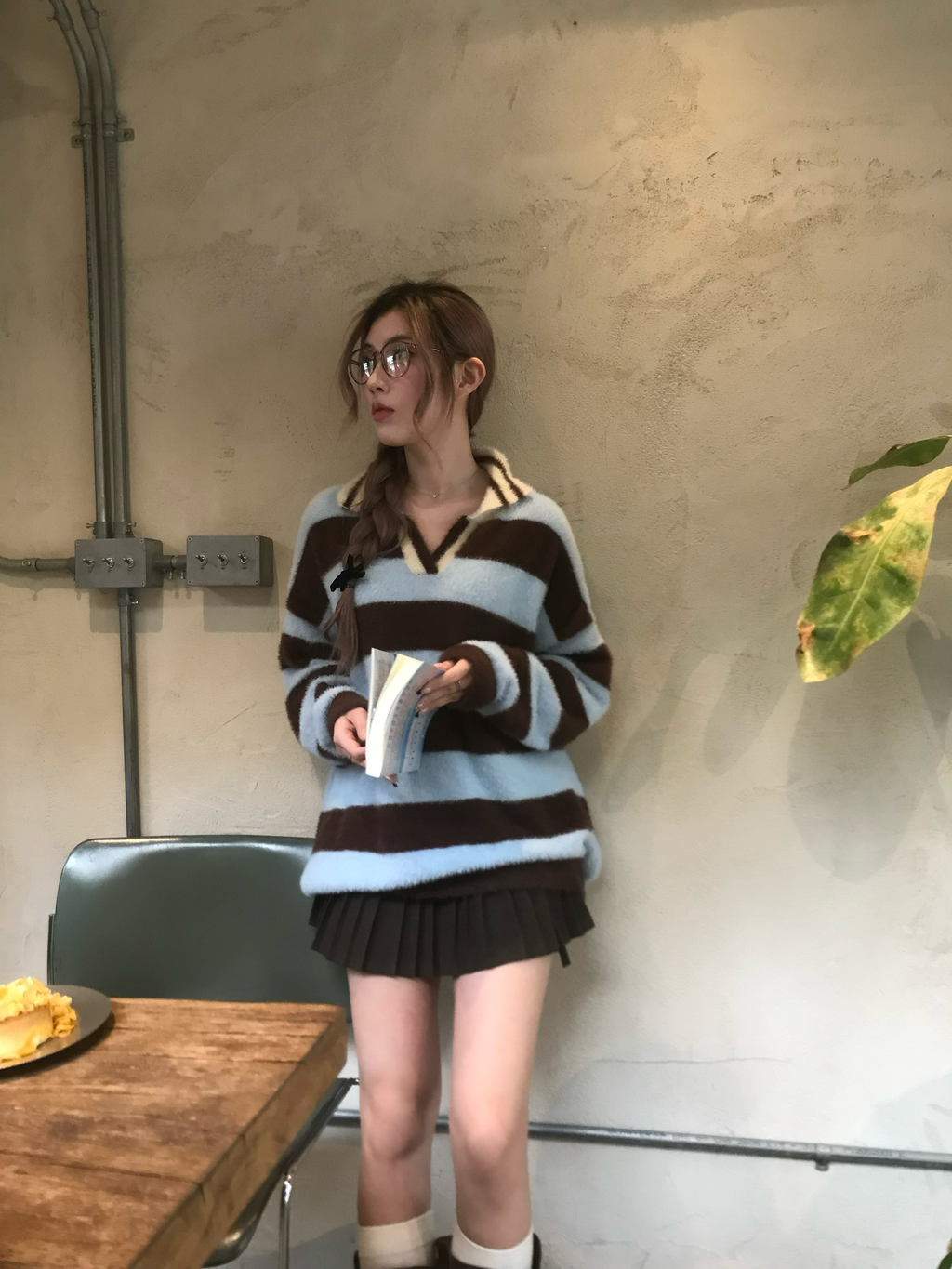 [𝐀𝐥𝐭𝐞𝐫𝐫.𝟏𝟎] 藍調時刻條紋毛呢上衣
