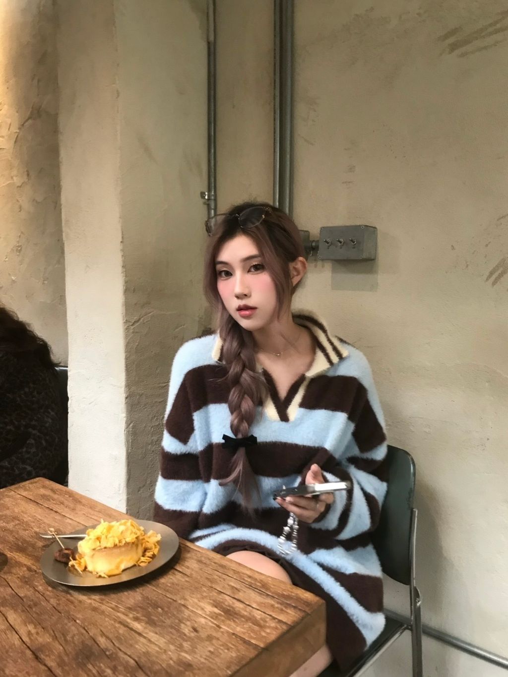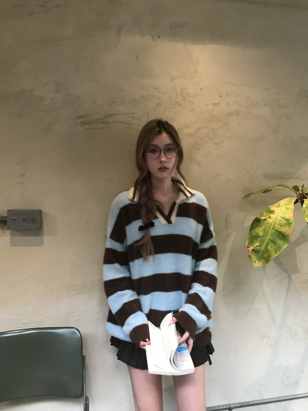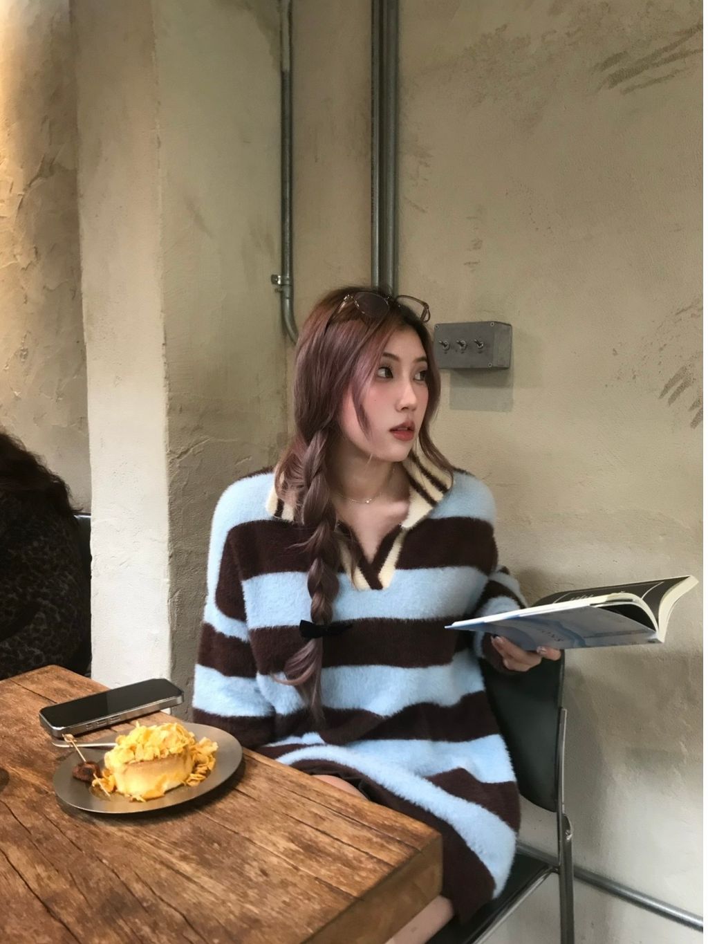 [𝐀𝐥𝐭𝐞𝐫𝐫.𝟏𝟎] 藍調時刻條紋毛呢上衣
