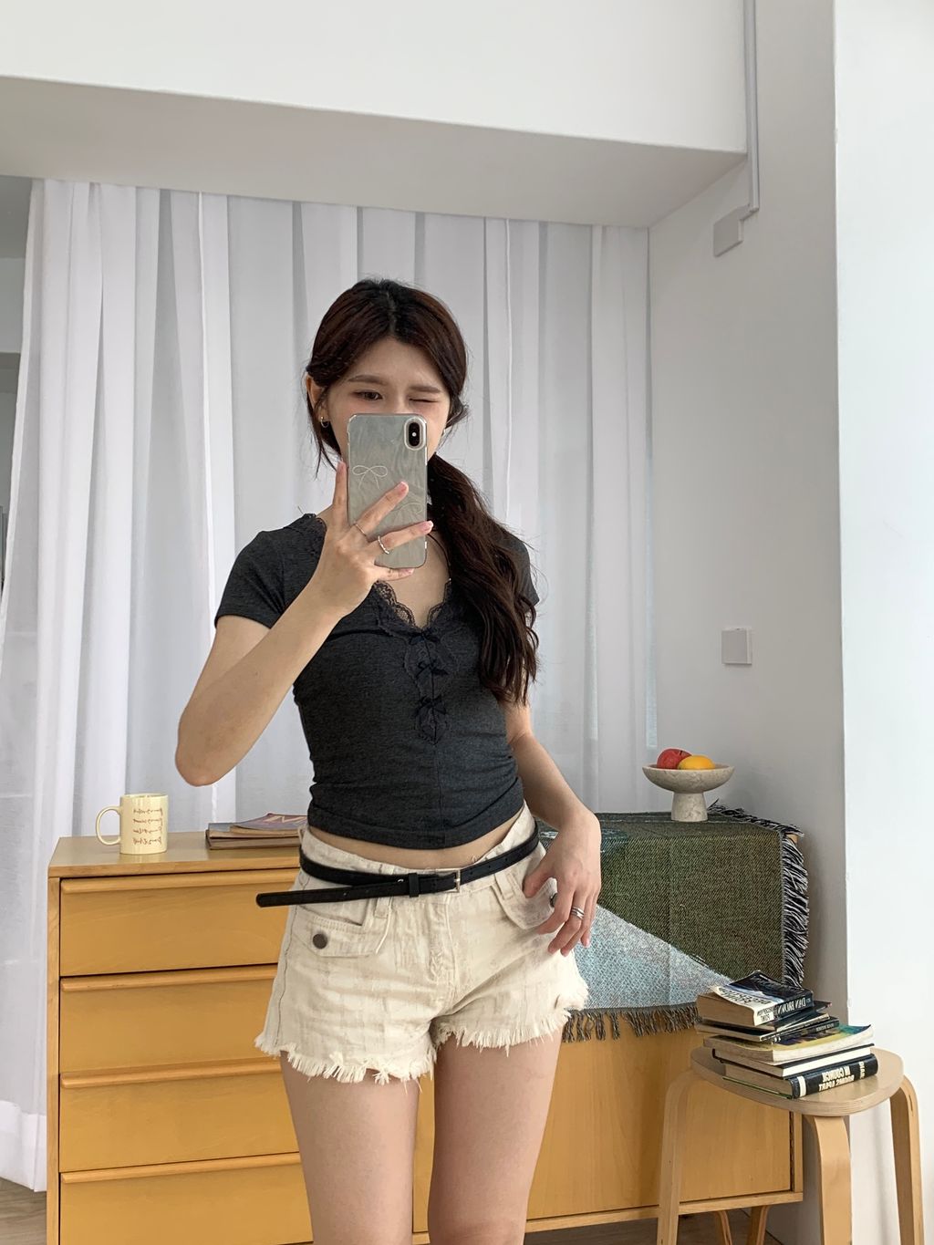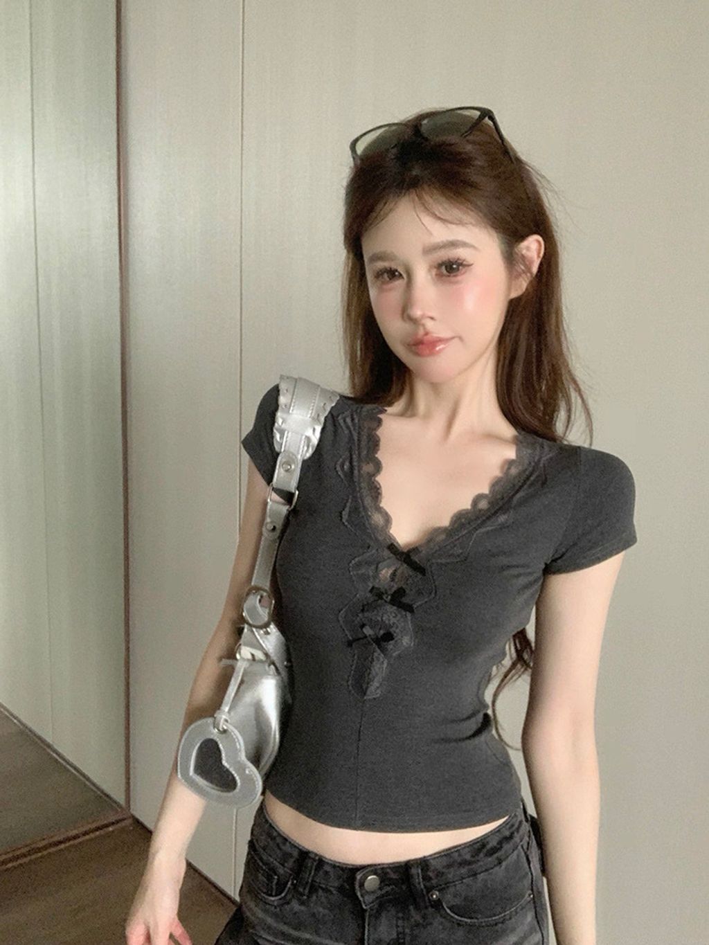 [𝐀𝐥𝐭𝐞𝐫𝐫.𝟏𝟎] 純慾蕾絲V領蝴蝶結上衣