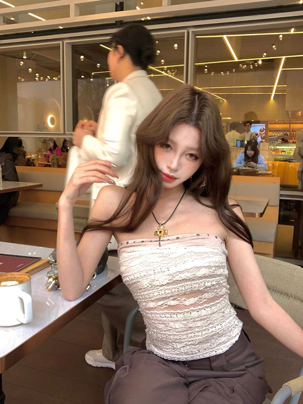 [𝐀𝐥𝐭𝐞𝐫𝐫.𝟏𝟎] 美式蕾絲兩件套平口上衣(2 colors)