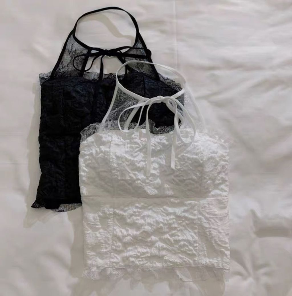 [𝐀𝐥𝐭𝐞𝐫𝐫.𝟏𝟎] 韓系甜心網紗帶胸墊背心(2 colors)