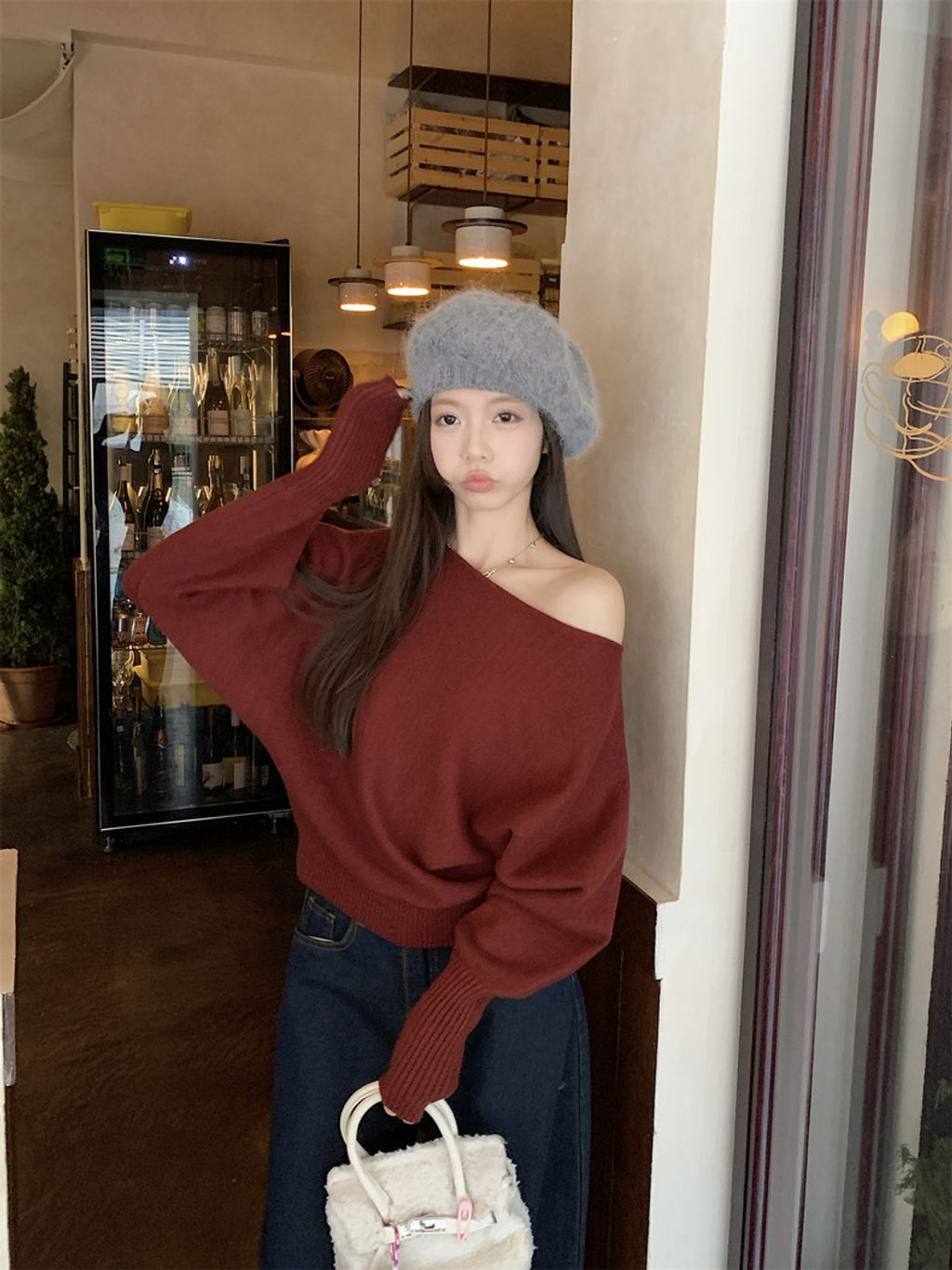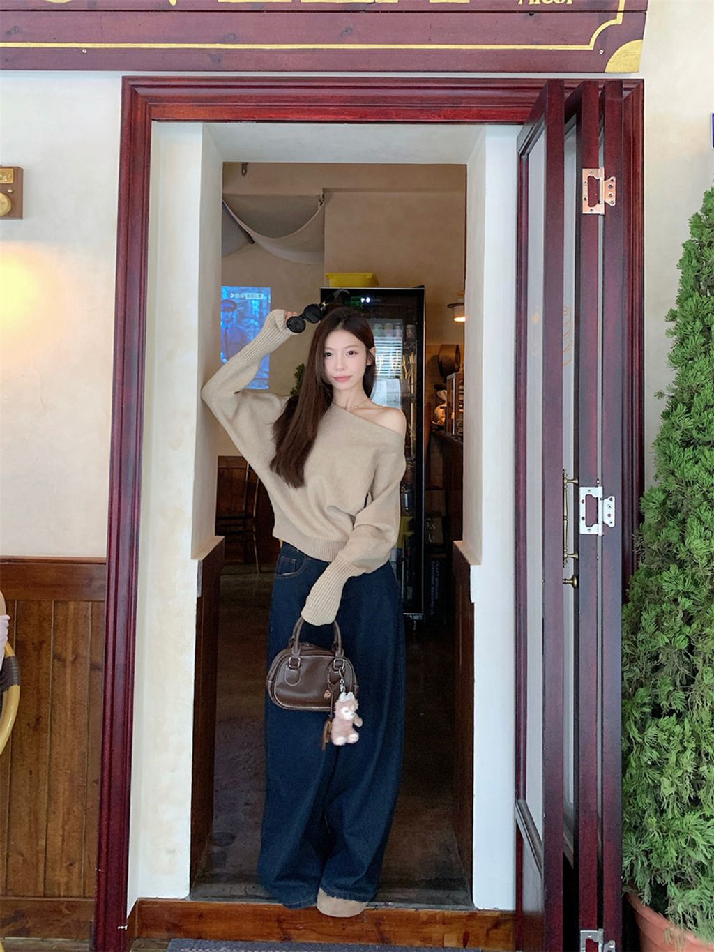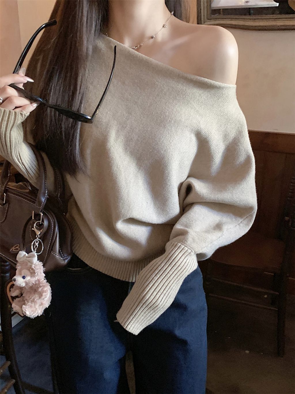 [𝐀𝐥𝐭𝐞𝐫𝐫.𝟏𝟎] 鬆弛舒適斜肩素色毛衣(4 colors)