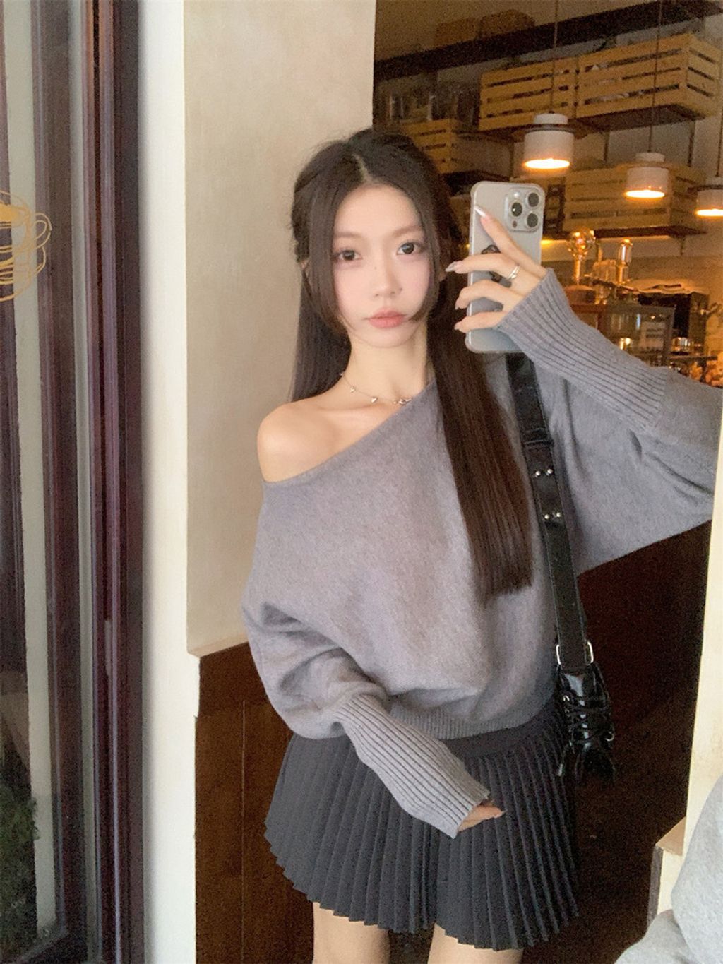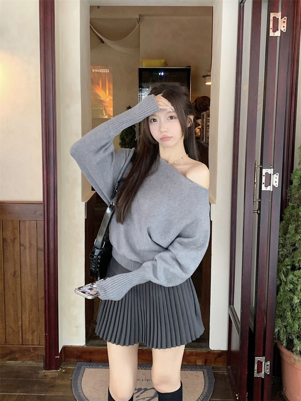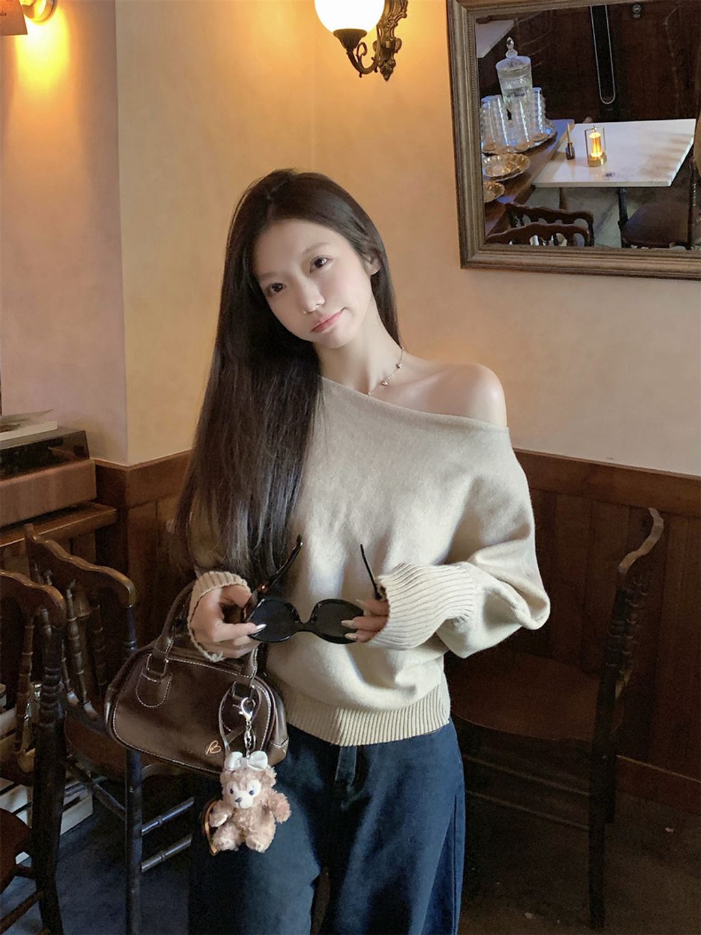 [𝐀𝐥𝐭𝐞𝐫𝐫.𝟏𝟎] 鬆弛舒適斜肩素色毛衣(4 colors)
